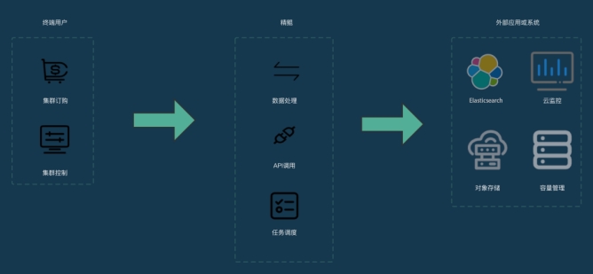 同时,针对已订购的实例,终端用户可通过控制台管理入口进行快速的可视化管理与操作。比如终端用户在实例中配置完参数后,可以通过精鲲的API方式自动读取用户的参数配置,再进行监控指标的采集和计算,并通过外部API接口推送监控系统,最后上传到外部的ES系统进行对象存储。此外还可以实现与云上对象存储产品的快速串联,实现实例的备份与恢复。