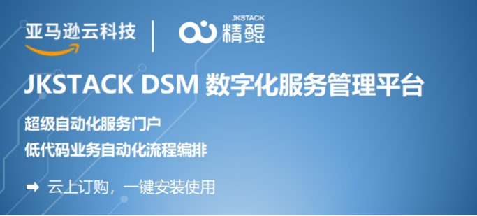 此次上架亚马逊云科技Marketplace的JKSTACK Digital Service Management(以下简称DSM)是精鲲超级自动化的前端服务管理模块,目前版本已更新为支持CentOS Linux,并通过了亚马逊云科技Log4j安全漏洞修复检测,支持 100 多种AWS EC2 实例类型的AMI(Amazon 系统镜像)部署。