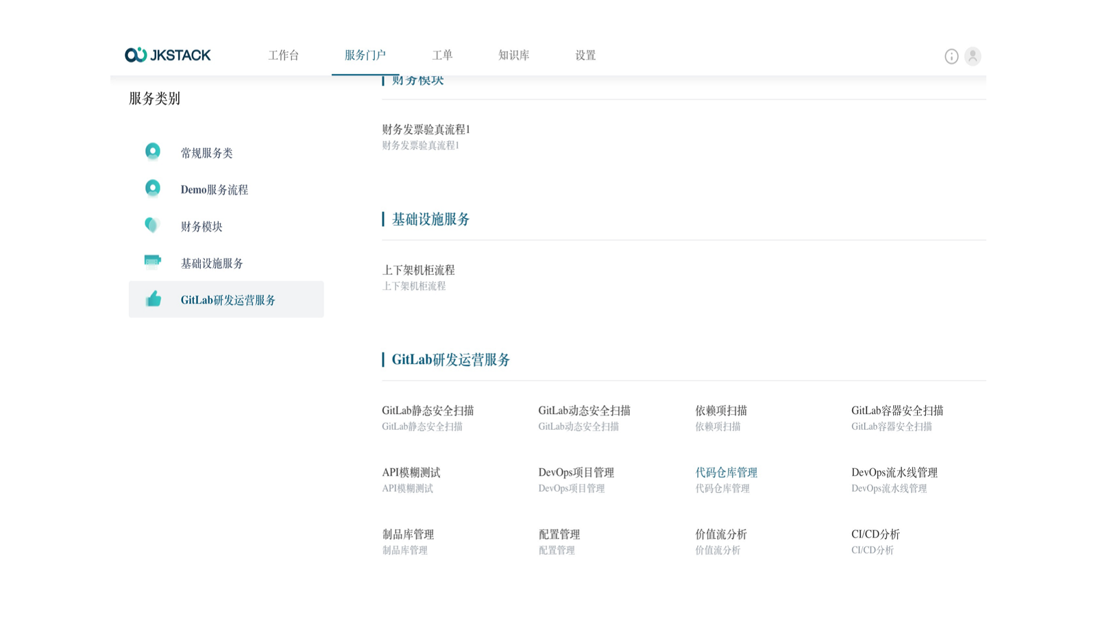 极狐GitLab拥有完备的扫描工具集成,涵盖了DevSecOps扫描的各个方面。不同的企业可以将JKSTACK的自动化能力结合极狐GitLab pipeline trigger API和自身安全流程编排发布成标准化的安全扫描服务,让用户可以调用从开源版到旗舰版的各种扫描工具,并支持在应用开发的各个阶段,由开发人员、安全人员、甚至是业务运营人员从服务门户按需发起扫描,而无需进入极狐GitLab手动配置安全选项或流水线。