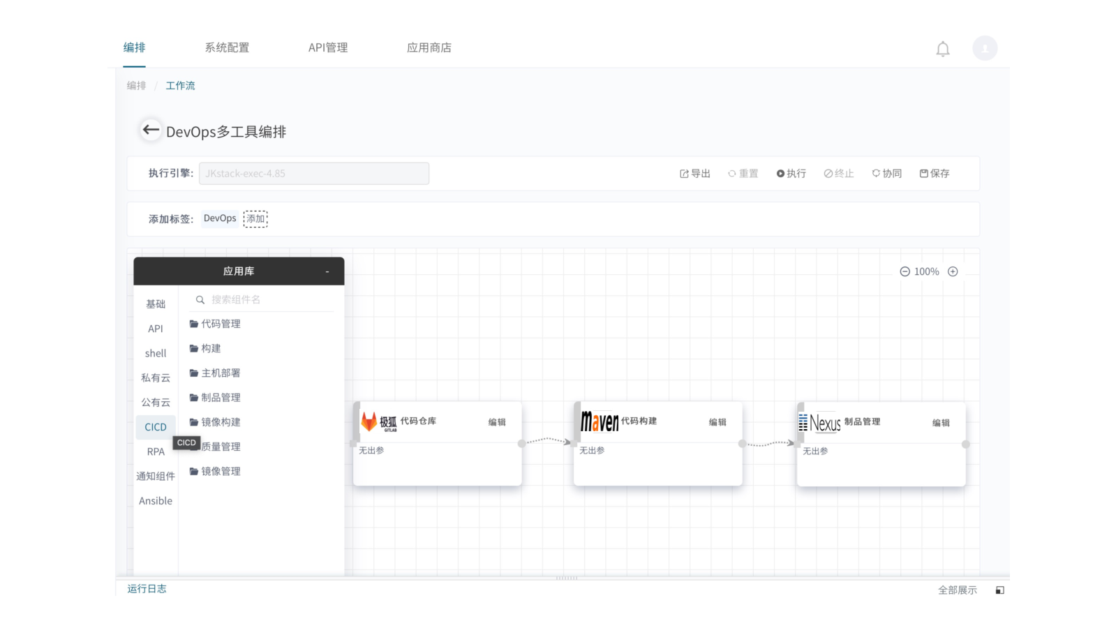 作为一体化的DevOps平台,极狐GitLab涵盖了DevOps全生命周期的各个功能环节,每一个组件都具备API支持。即使用户在某些领域已有现成的DevOps工具或者因为历史原因无法全部替换时,也能通过JKSTACK业务自动化平台将需要的极狐GitLab组件与现有工具,通过后台API和脚本的编排灵活地组合成新的工具链,提升DevOps多工具间的组合度与兼容性。