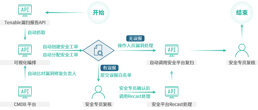 业务痛点漏扫手动处理效率低:根据漏洞类型手动分配、创建工单,再通过人工校验漏洞修复结果的流程效率低下