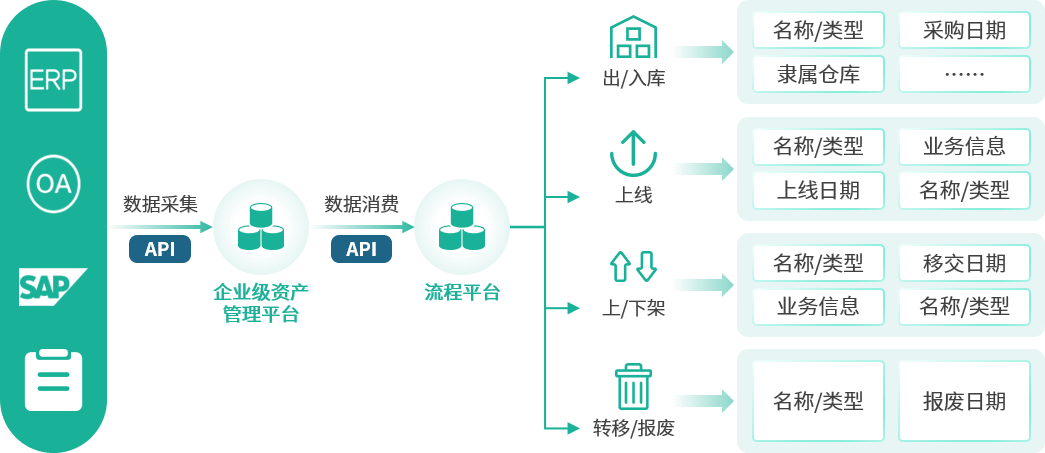 流程平台与企业资产管理平台打通,实现资产数据和过程可视化