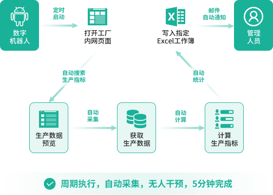 大批量的重复性人工操作,准确率低:相关的生产数据需要复制到指定Excel某单元格中,并按公式计算处理,人工操作易出错