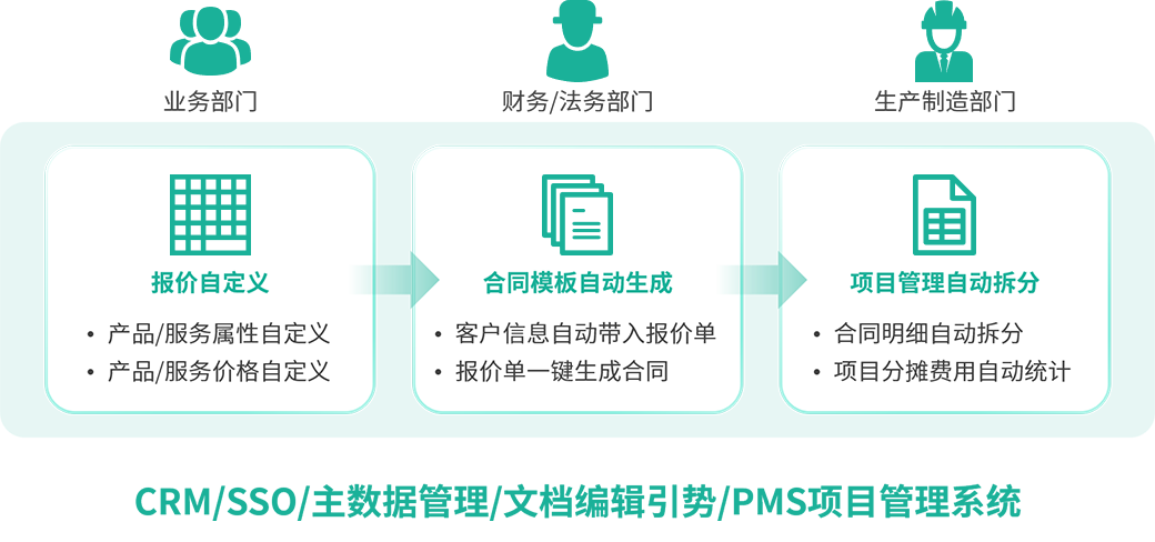 可视化构建从商务报价入口-订单管理-合同管理-项目拆分的业务工作流
